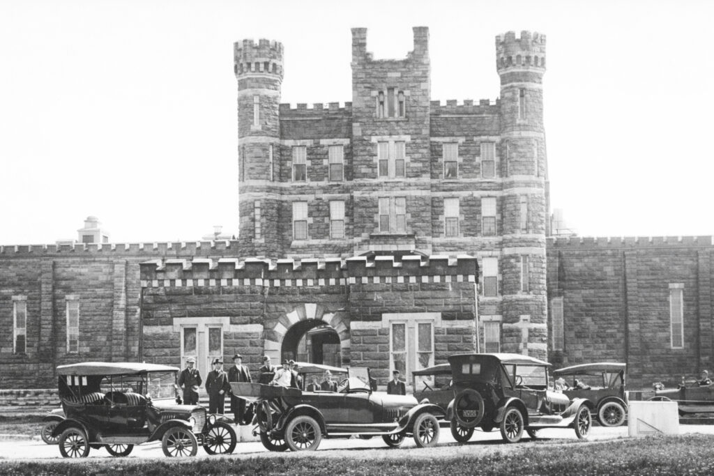 His Gothic-style architectural vision gave rise to the castles-like appearance that Truman Capote, in his book In Cold Blood, described the penitentiary as a “black and white castle,” capturing its imposing and eerie beauty. The look was further intensified by the presence of an on-site coal mine, which operated from 1881 to 1947.
